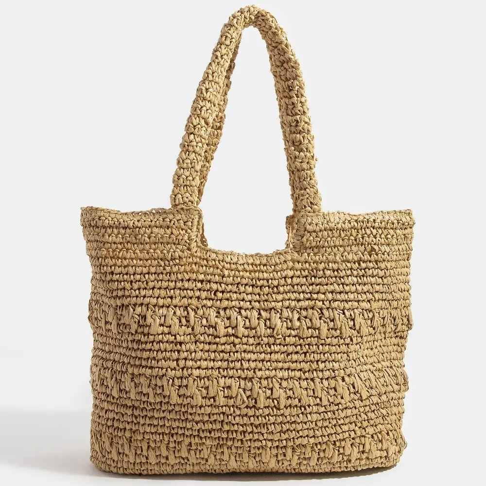 This tote bag introduces a stunning straw braided square style. Step into a world of refined taste as this tote bag effortlessly refines the details of your outfit.