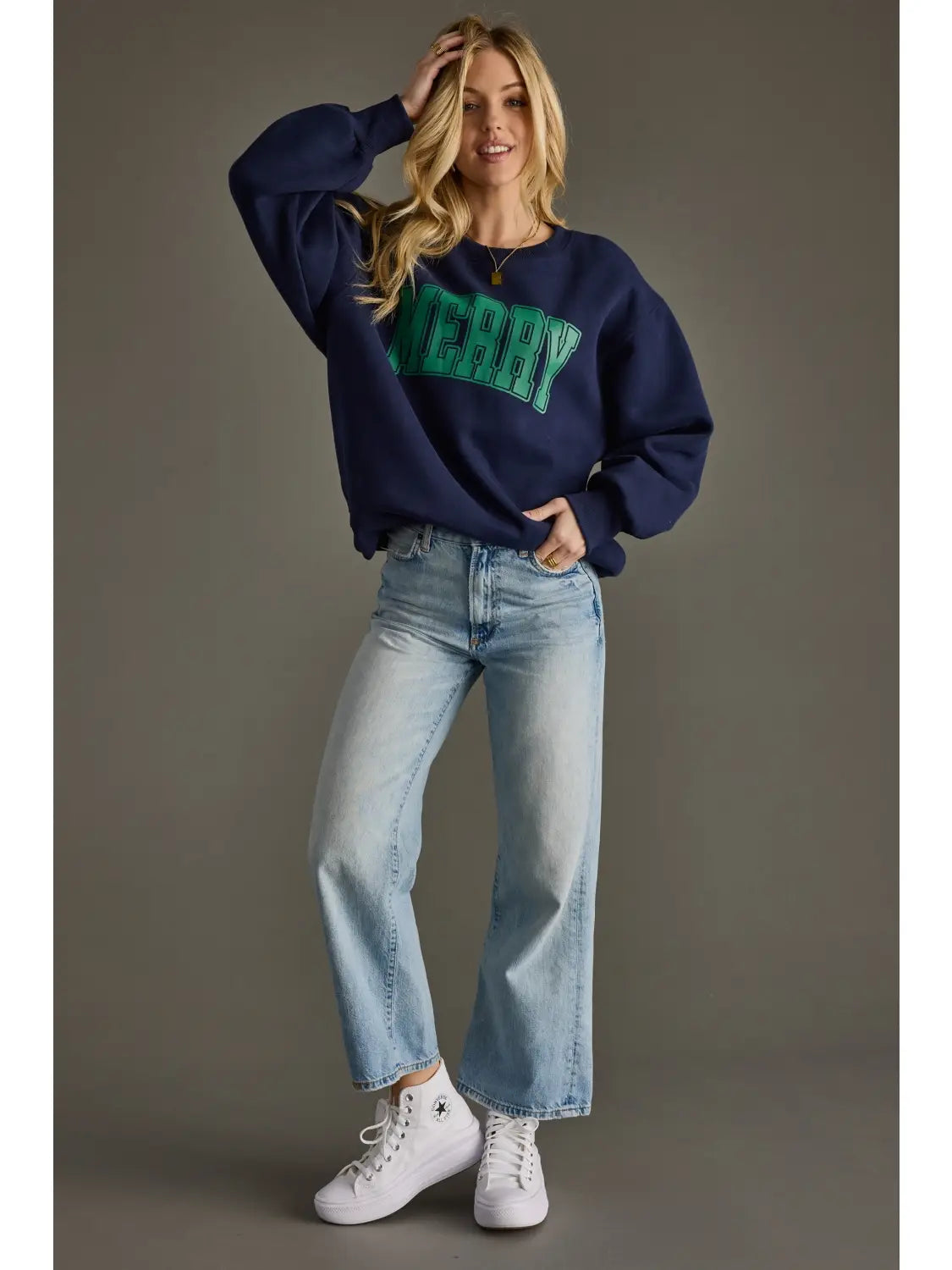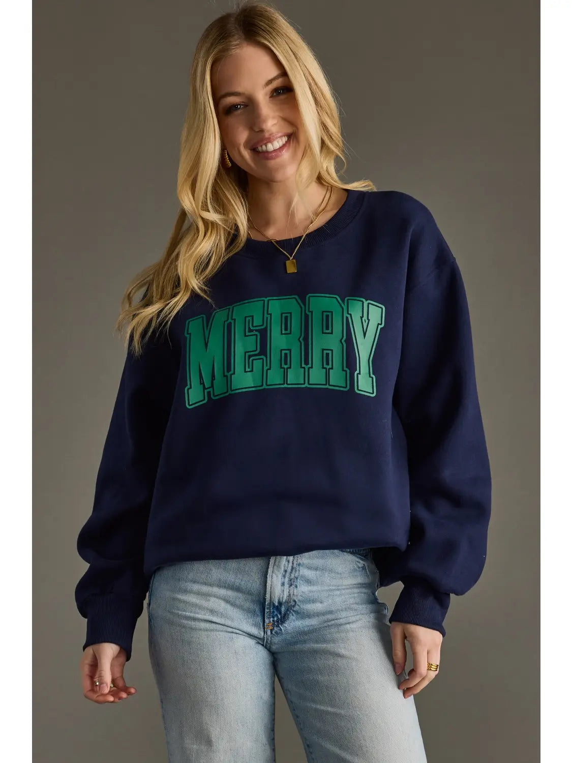 Green "Merry" textured text on the front