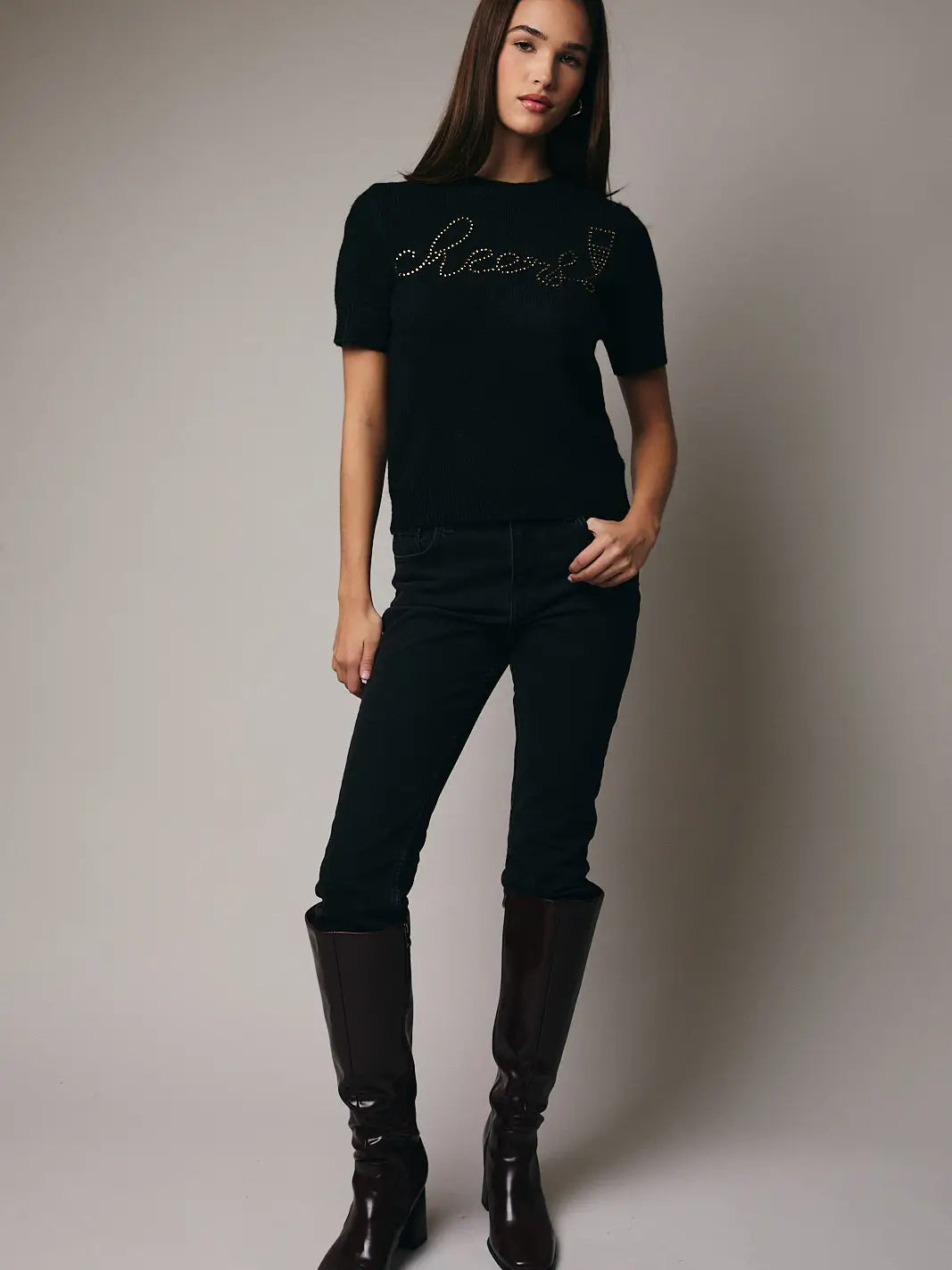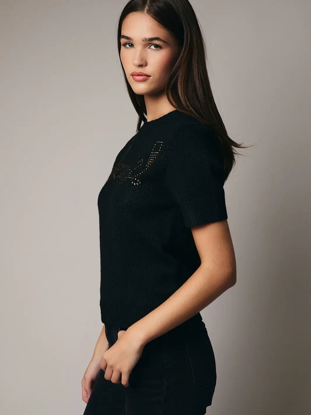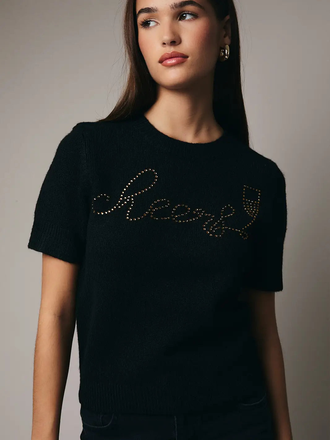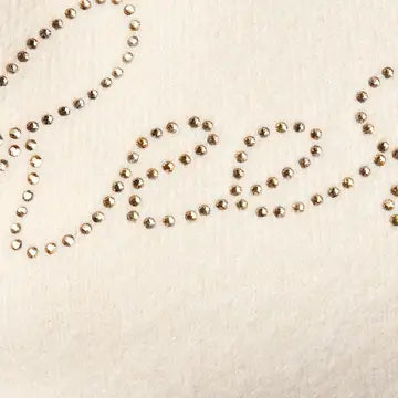 Celebrate in style with this charming crew neck sweater featuring a sparkling "Cheers" message and champagne glass design in rhinestones. Perfect for festive occasions, girls' nights out, or whenever you want to add a touch of glamour to your everyday look. The short sleeves keep things casual and comfortable, while the eye-catching rhinestone embellishment makes a statement. Cheers to looking fabulous!
