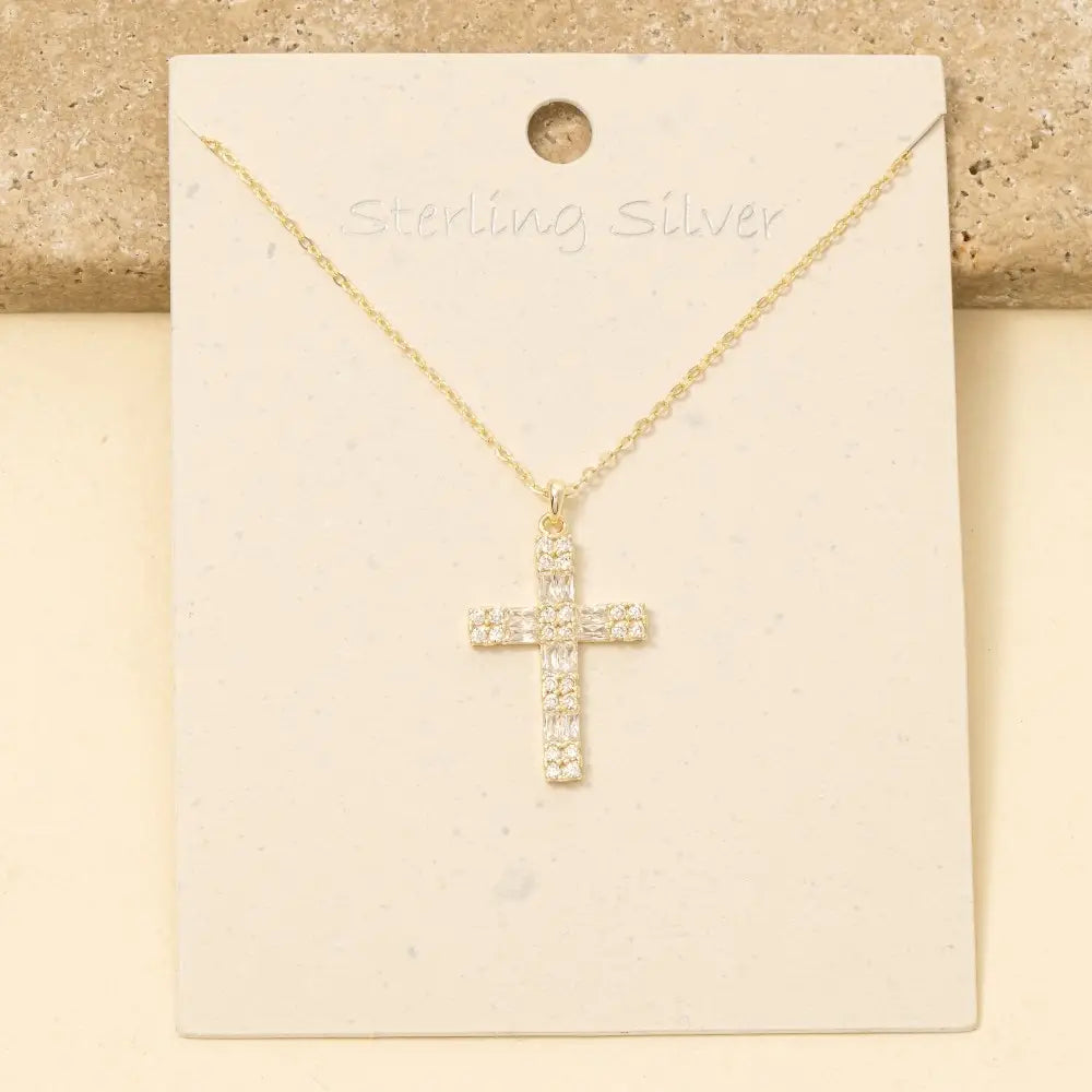 Sterling Silver Cz Pave Cross Pendant Necklace