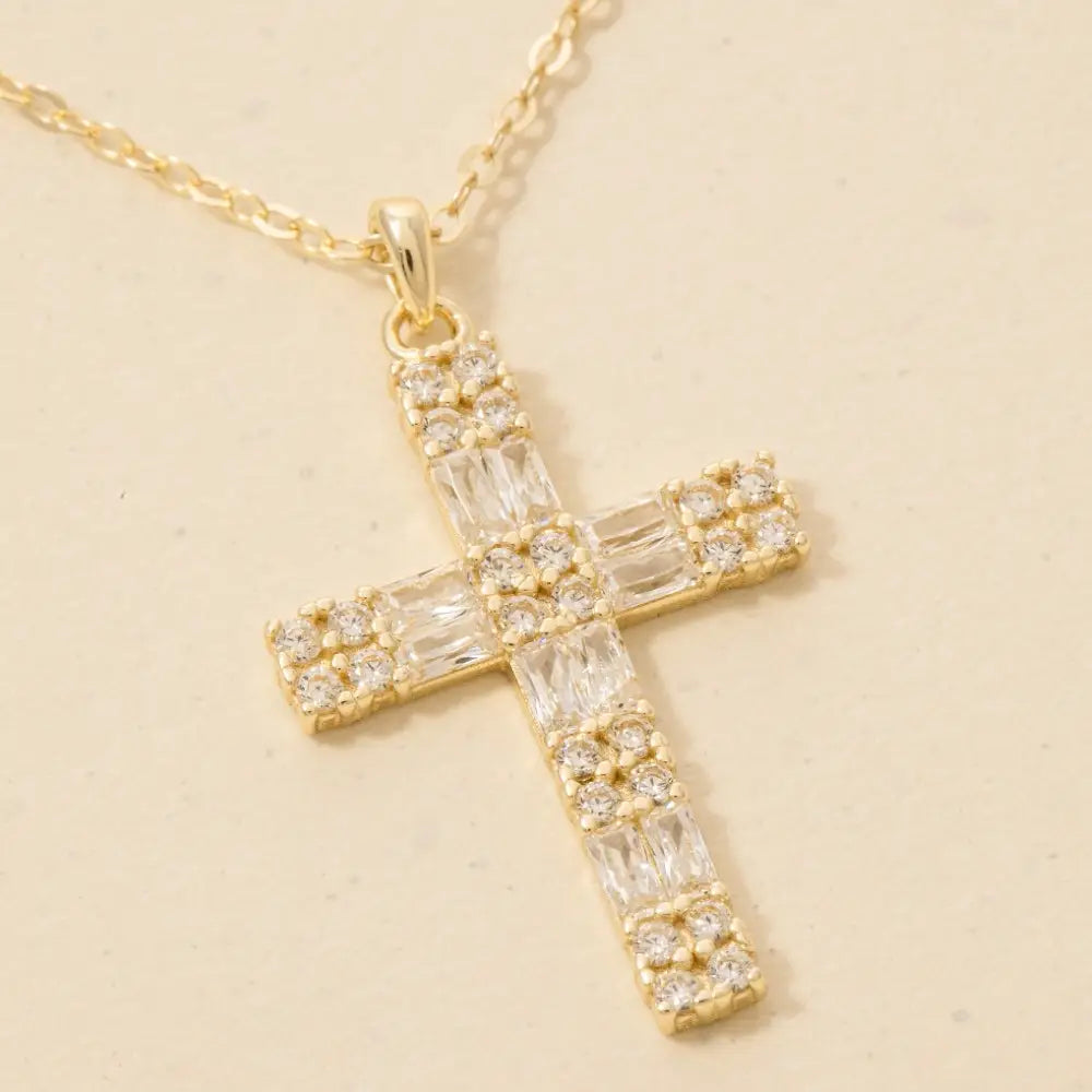 Add a touch of elegance and glamour to your look, this pendant necklace presents a striking sterling silver cubic zirconia pave cross design.