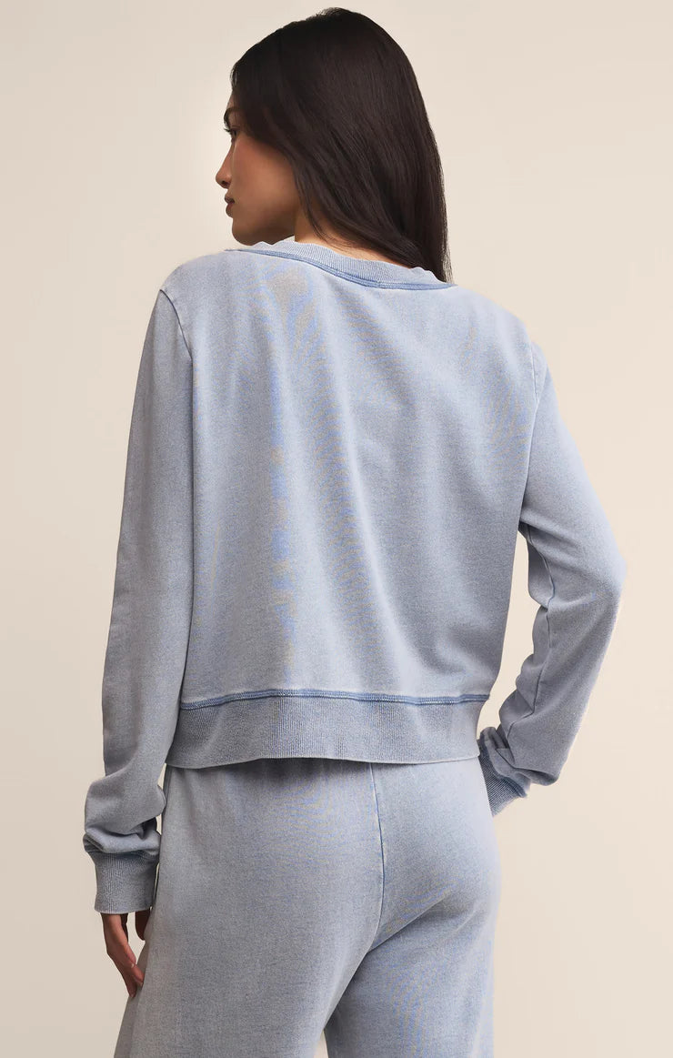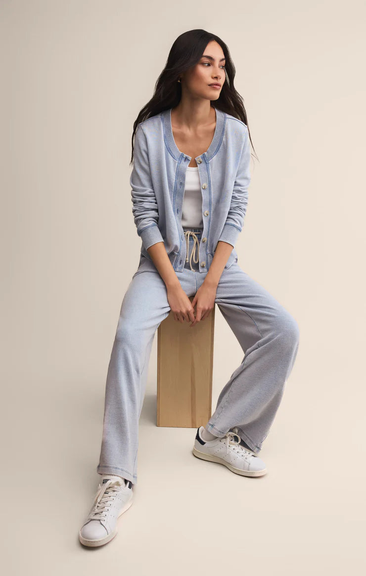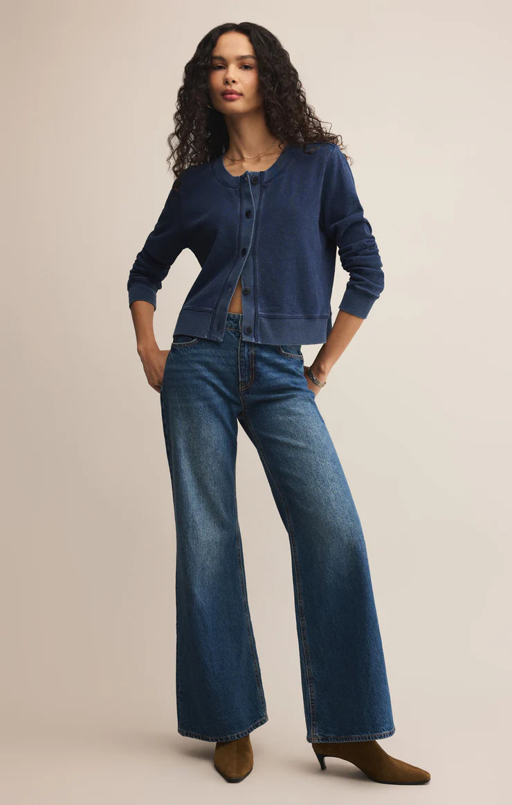 This relaxed cardigan is made from knit denim french terry, featuring a versatile crew neckline and easy-going silhouette. So comfortable, it just may beceome your new favorite laid-back layer.