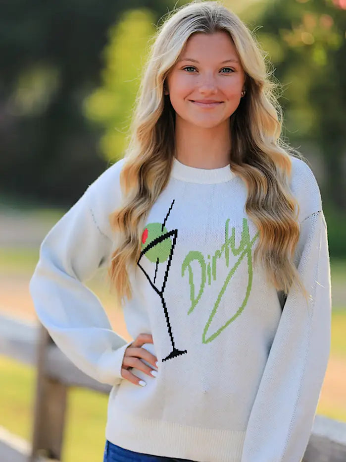 Elevate your casual wardrobe with this playful long sleeve lightweight sweater featuring a cheeky Dirty Martini Glass and Olive graphic. Perfect for cocktail lovers and design enthusiasts alike, this crisp white sweater brings a touch of sophisticated humor to everyday style. The breathable fabric keeps you comfortable whether you're heading to brunch, a night out, or just lounging at home. A conversation starter that pairs effortlessly with jeans, trousers, or your favorite skirt. Cheers to looking good!