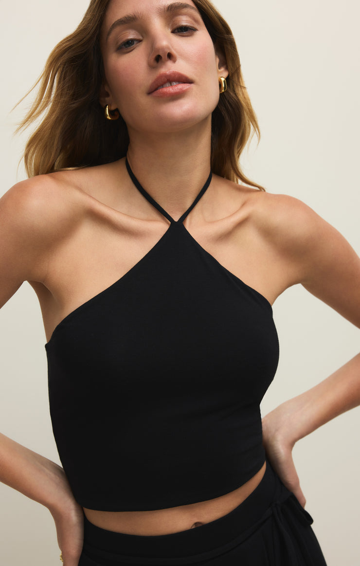 Going somewhere? This cropped halter transitions effortlessly from day to night.