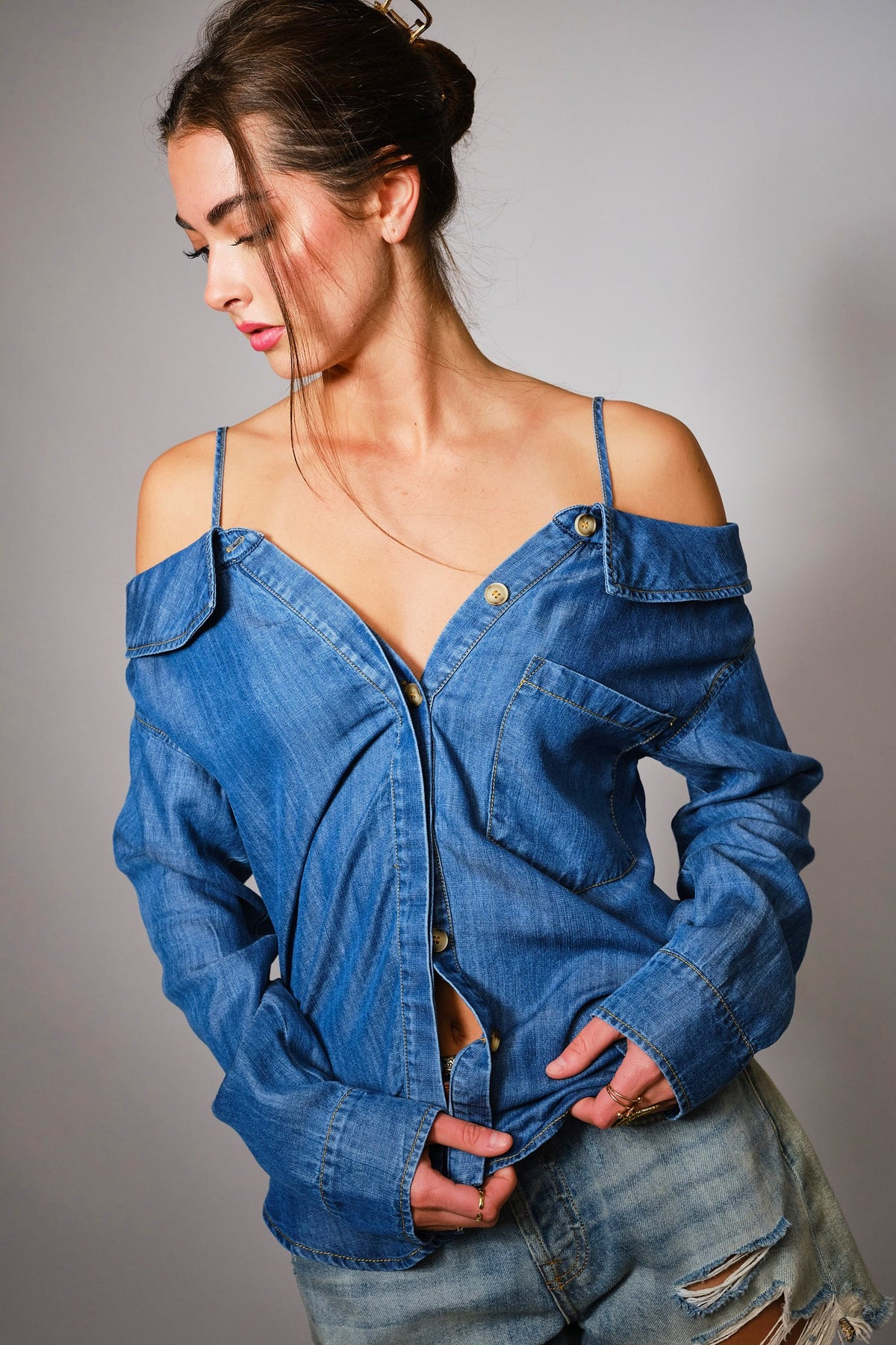Off Shoulder Denim Shirt