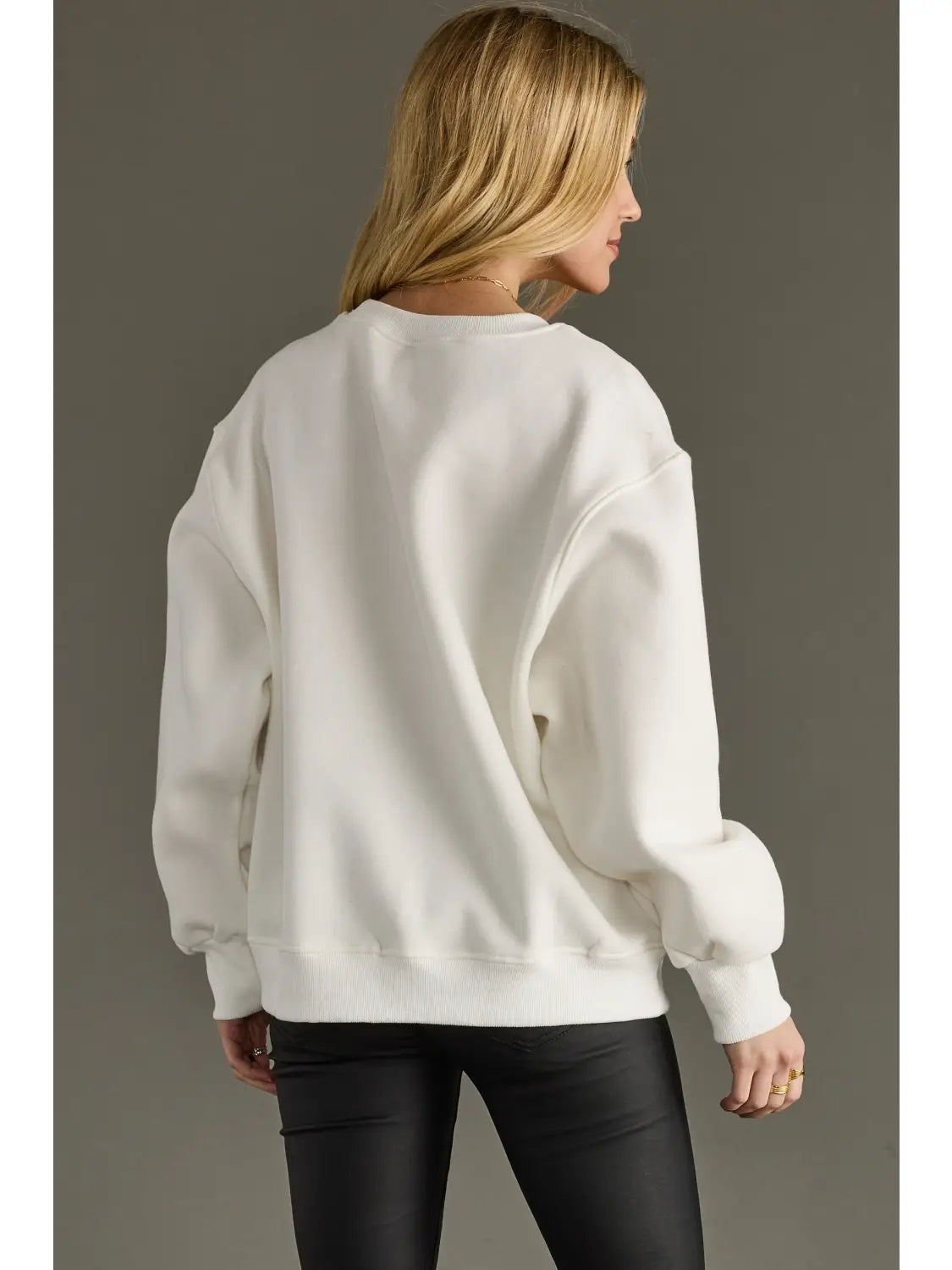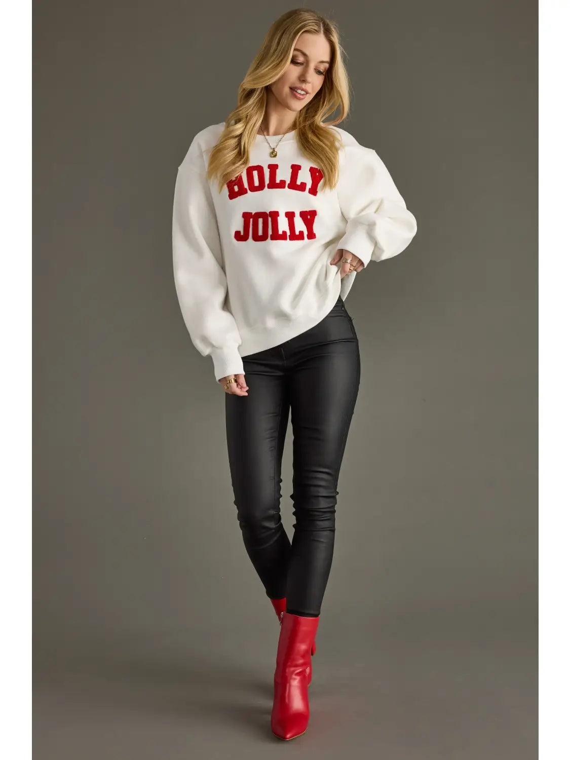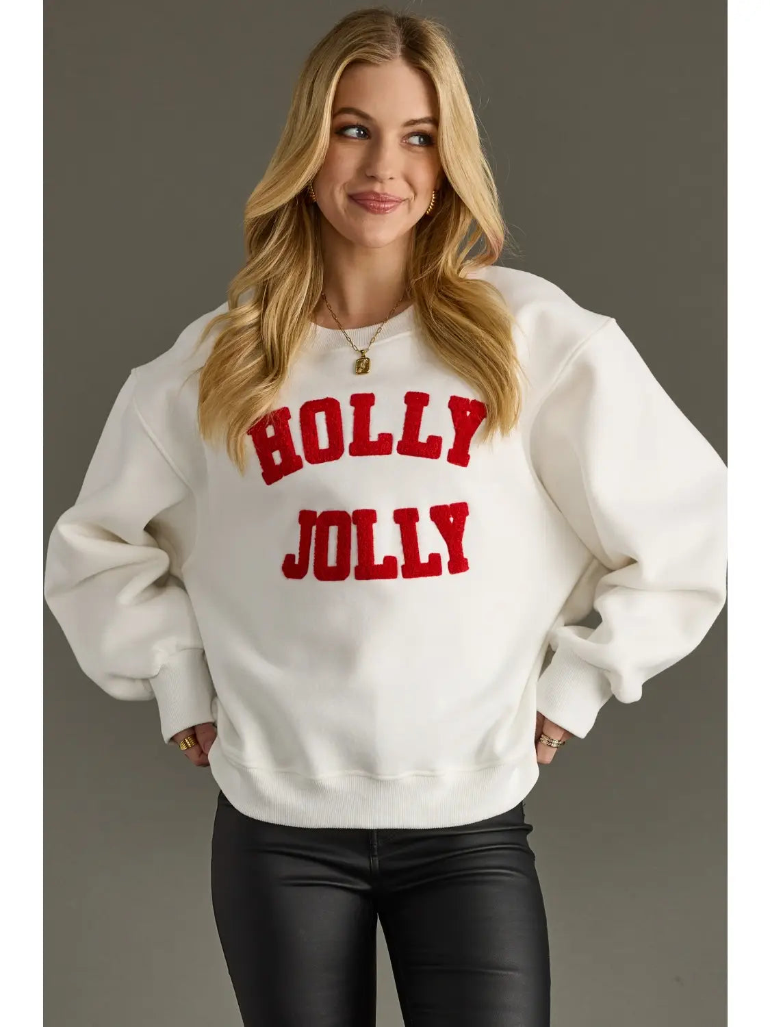 Celebrate the season in style with this cozy white sweatshirt featuring a fun red "Holly Jolly" textured design on the front. Perfect for spreading festive cheer while staying warm and comfortable all day long.